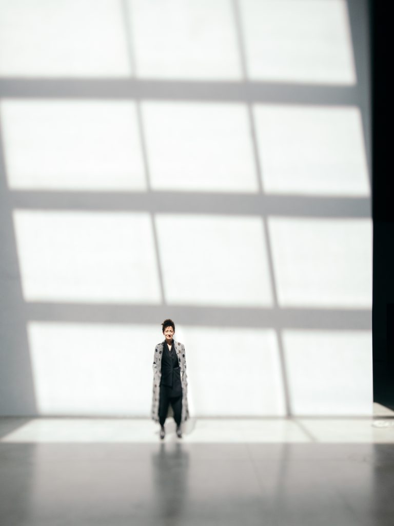 HUO: So we had this conversation. He came up with a very beautiful soundtrack for the show. We have to imagine: the models dance through the space; there is a soundtrack of Pierre Boulez.