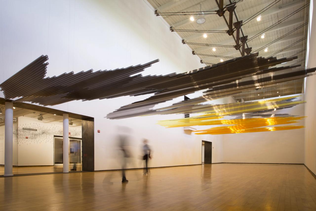 Installation view of Fernández's "Black Sun" (2014), made of polycarbonate tubing, at Mass MoCA in North Adams, Massachusetts. (Photo: Courtesy Teresita Fernández)