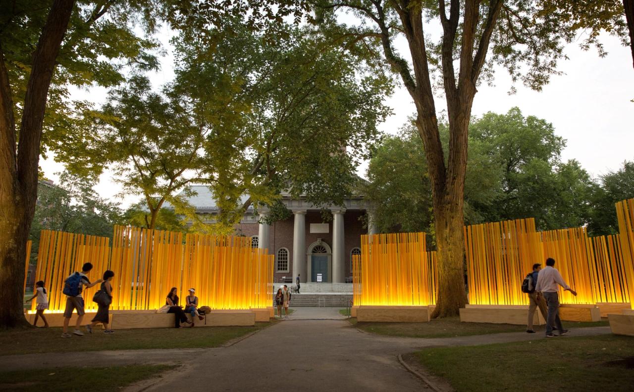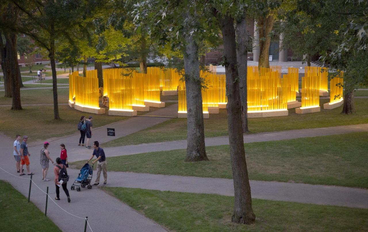 Fernández's "Autumn (…Nothing Personal)" on Harvard University's campus in fall 2018. (Photo: Robin Lubbock/WBUR, Courtesy Teresita Fernández)