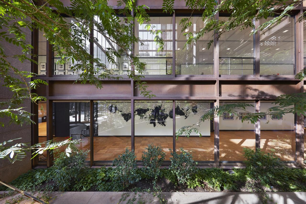 Seen from outside of the Ford Foundation in New York City, Fernández's "Island Universe" (2019), a site-specific charcoal installation. (Photo: Courtesy Teresita Fernández)