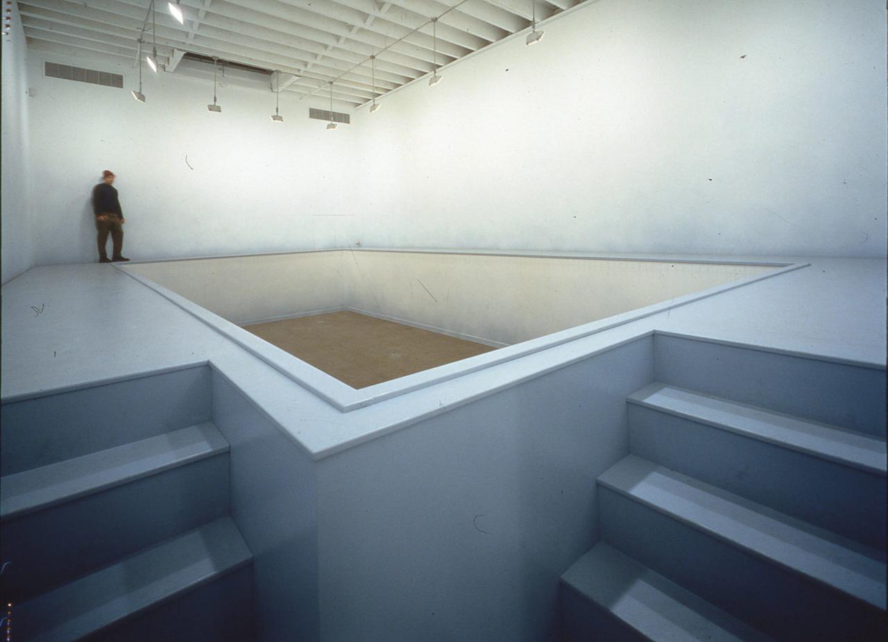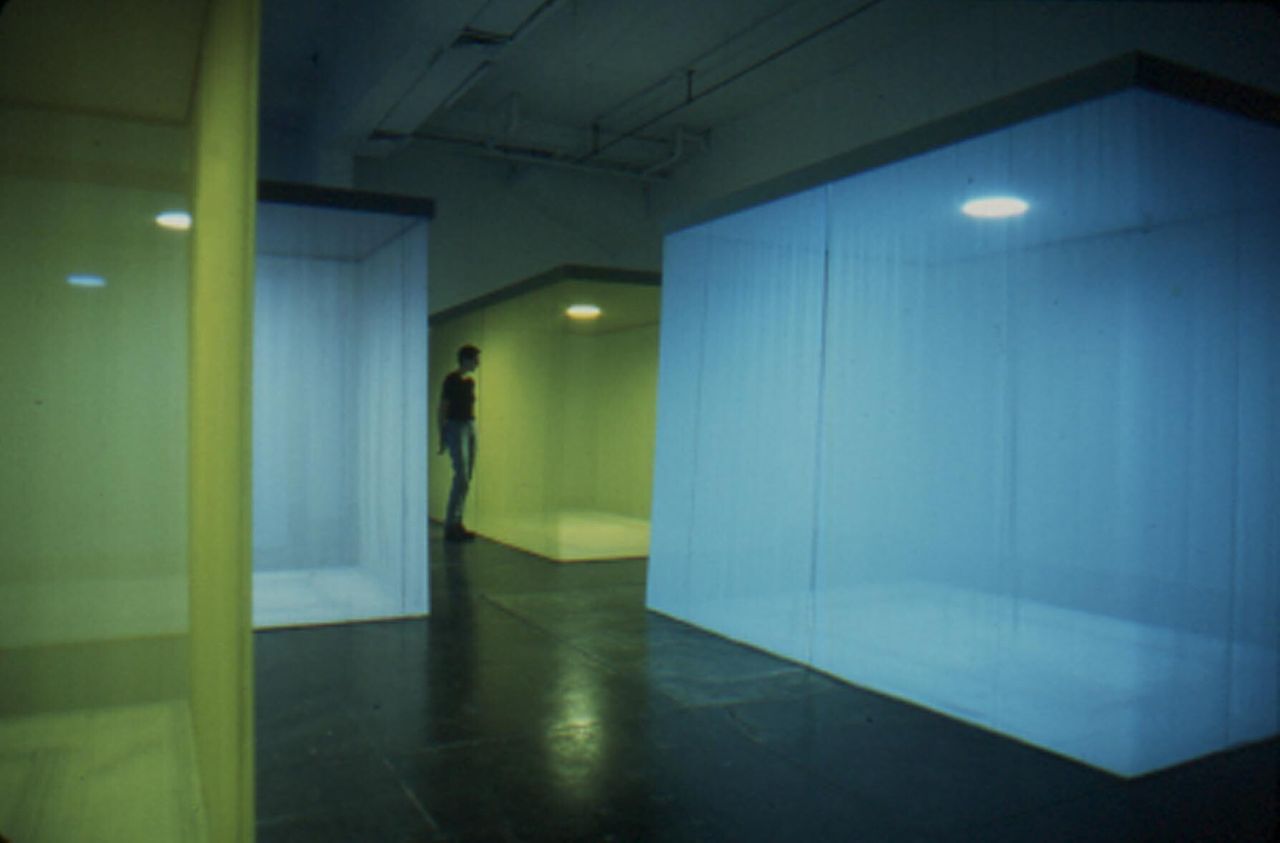 Fernández's "Borrowed Landscape" installation (1998), made of wood, fabric, oculus light, pencil, and paint, at the Institute of Contemporary Art in Philadelphia. (Photo: Courtesy Teresita Fernández)