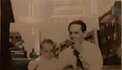 Brush and his son, Silla, on a motorcycle.