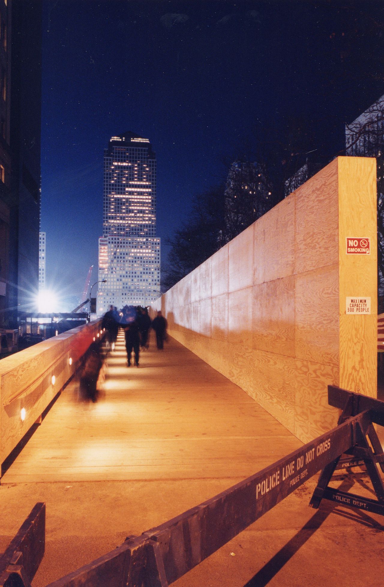 There was this very, very curious natural desire to see the wreckage. And it wasn’t perverse, really. It was because those towers were no longer there. People just really couldn’t make sense of the site and wanted to go there, but you couldn’t because there were barricades. We had this instinct to build a viewing platform that was ramping from the street up in the air and would create a perch for the public to be able to bare witness without getting in the way of the rescue and the cleanup effort.