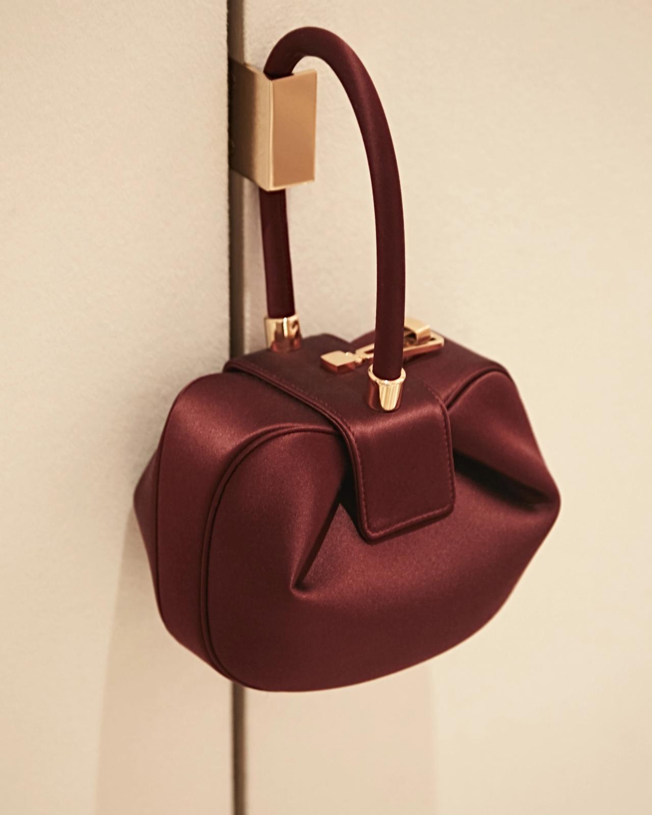 Gabriela Hearst Demi bag in ruby satin. (Photo: Oliver Mint)