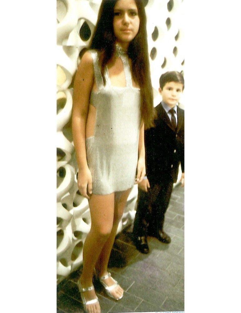 Ross, age 14, in a metal dress that she made, going to a bat mitzvah with her 7-year-old brother.