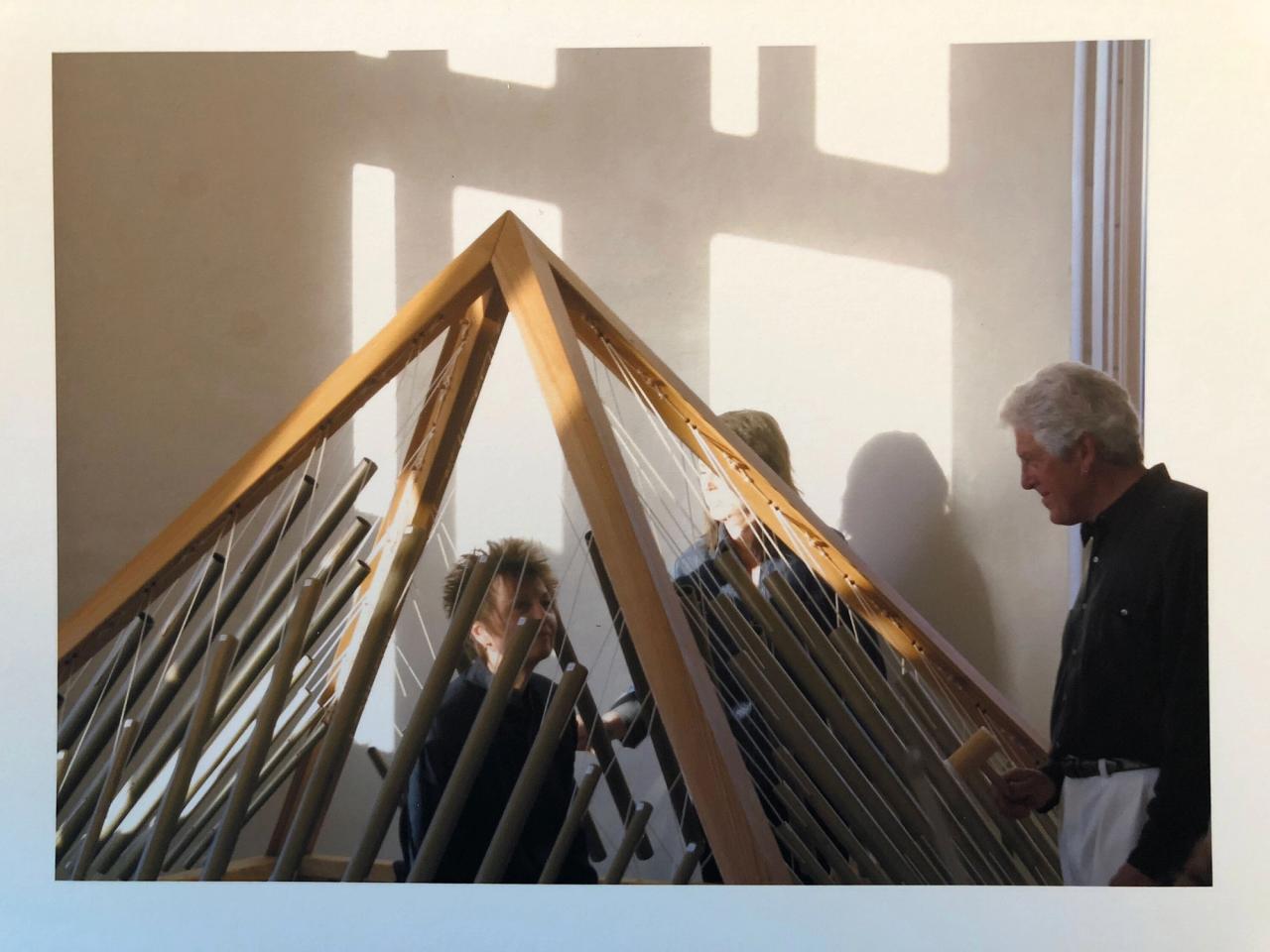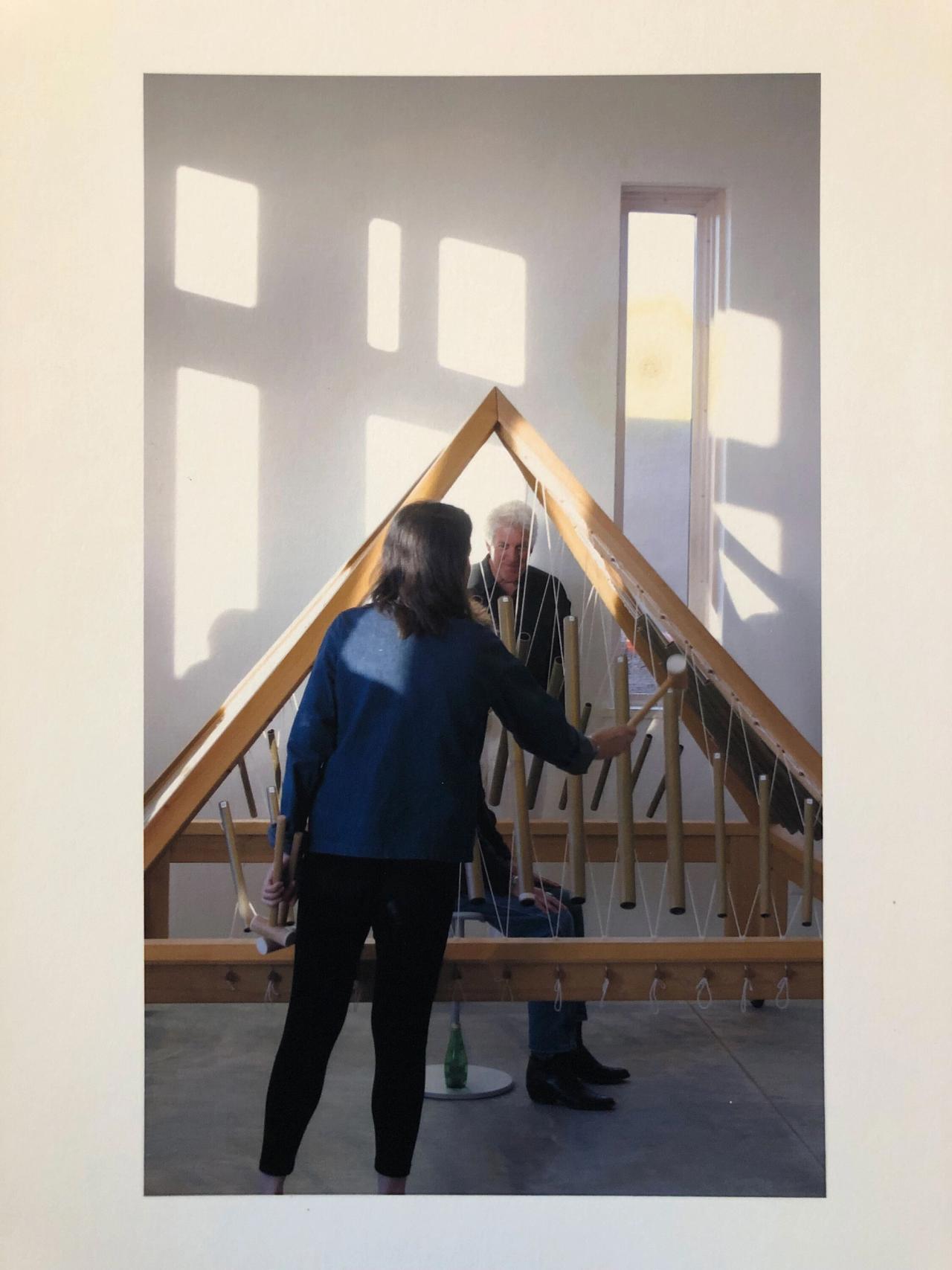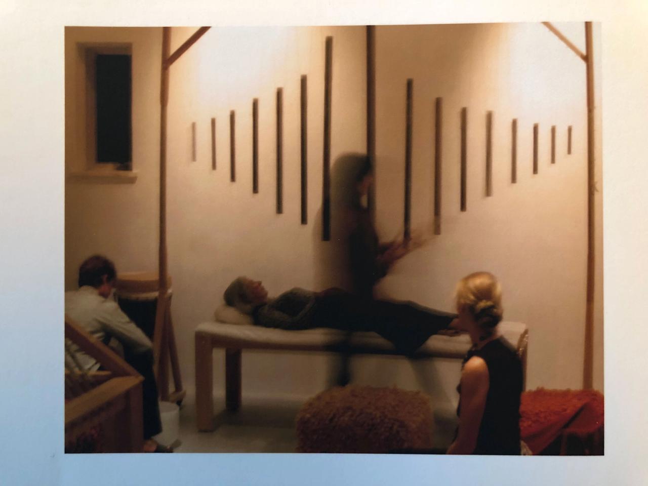 IR: I have a monochord table that you lie on that has a whole cup on your head, like a guitar, because that’s the way sound comes through, and then underneath is strings. And I play you from below. The reverberation through the wood and your spine creates—I’ve had people in there just start weeping because they’ve never … you know, what happens is, your kind of ego dissolves, and your mind just follows the sound. It feels like you’re back in that place when we were all sound.