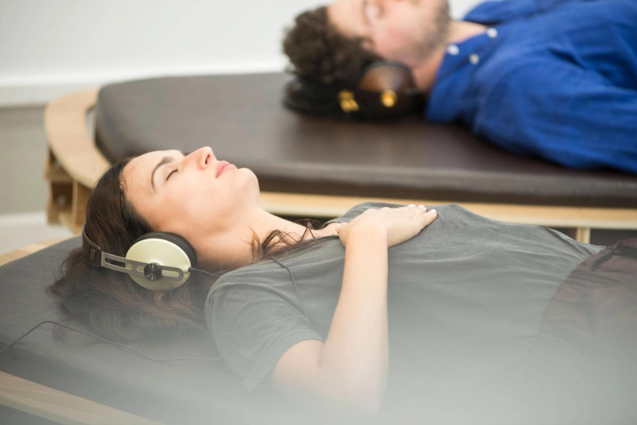 But right now I’m more interested in resonant frequencies than actual tunes. Different frequencies can help put you in different states of mind, and, in fact, at Google now we have these two kinds of beds by Tune Studio that you can lie down on for fifteen minutes. You can program it. It uses transducers, frequencies, to put you in different—theta, beta, delta. You can set it for ultimate creativity, and you listen through headphones. The transducers have some of the beats really to help people when they get stuck, to clear their minds. I know that some companies, Google included, have a little meditation room, but for some people that doesn’t work, especially when you’re at work and you’ve got the chatter going on in your brain. This idea—that you could just book a fifteen-minute session to lie down and be put in these states of mind through sound and frequencies—I personally think is the future. Instead of taking the cigarette break or the coffee break, or [going to] the candy machine, the future of work is going to be to understand these states of mind, and be able to enjoy them or use them when you need them. I’m more listening, and playing with, and experimenting with these different kinds of harmonics or frequencies and how they may activate our cells differently.