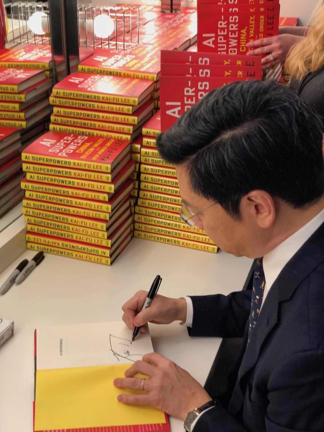 Lee at a book signing for A.I. Superpowers following a New York Times talk at the Guggenheim Museum in fall 2018.