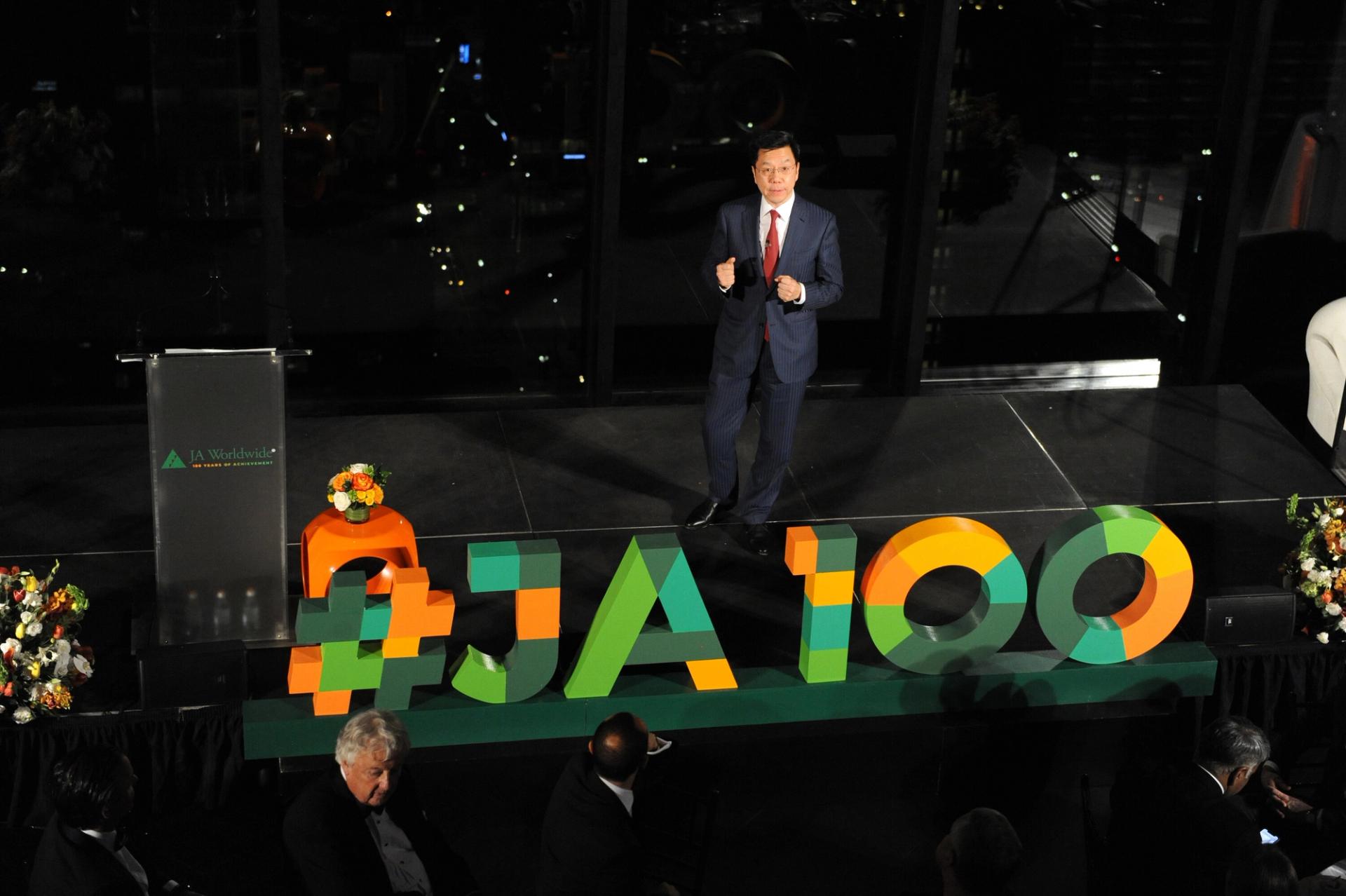 Lee speaking at a Junior Achievement 100th anniversary event in May 2019.