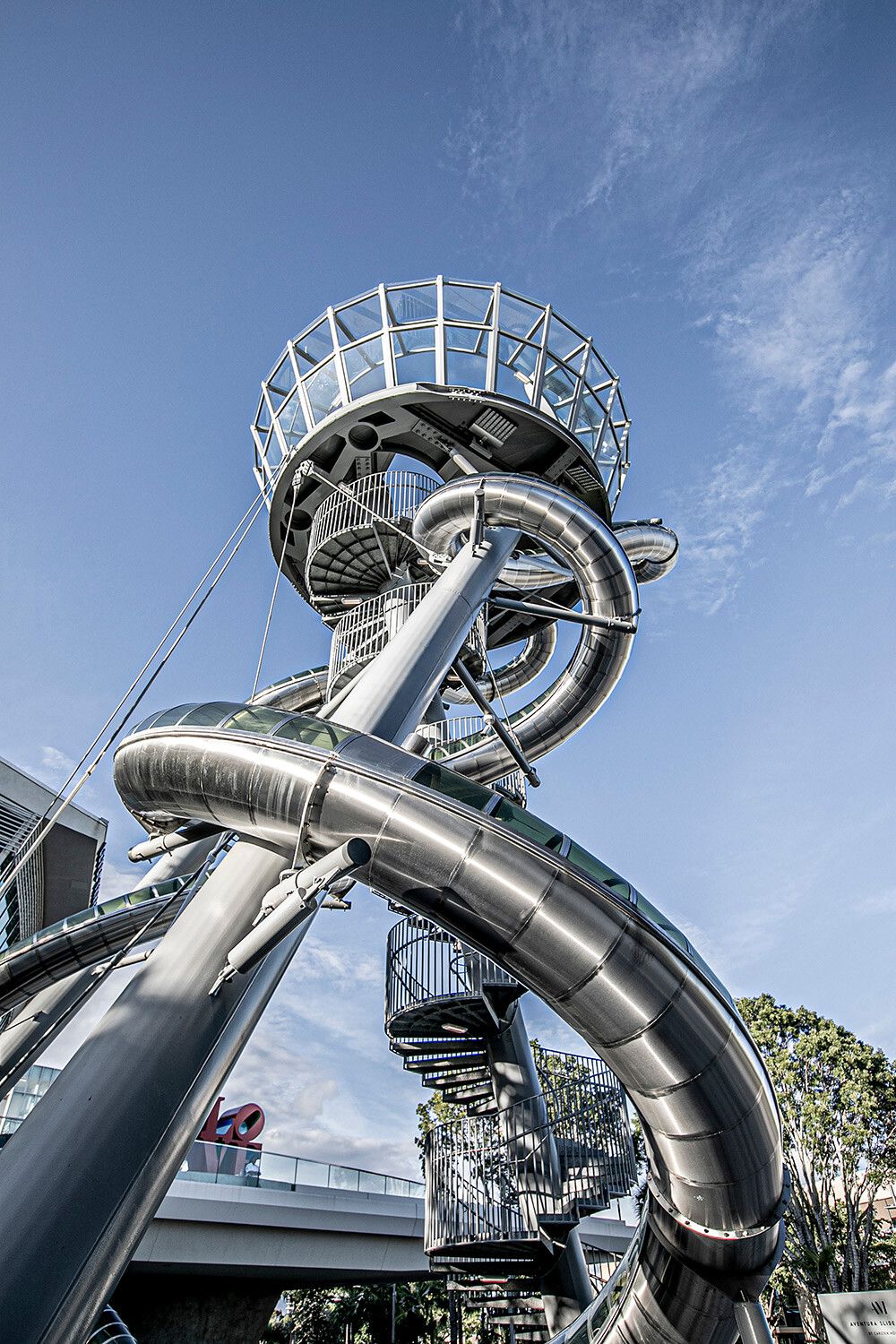 Carsten Höller’s Aventura Mall Slide Tower. (Photo: Leo Diaz)
