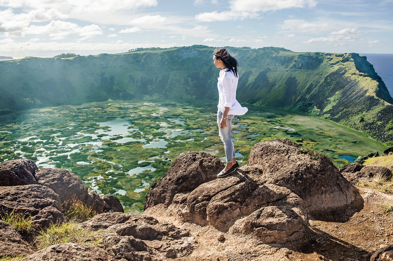 Péan visiting Easter Island. (Courtesy Monique Péan)