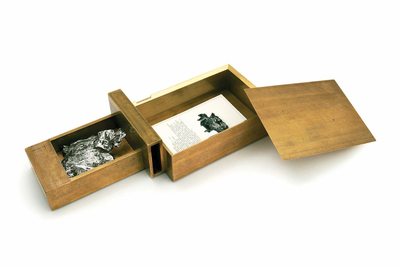 SB: You’ve got a meteorite-and-bronze vessel [titled “1130g Sikhote-Alin Iron Meteorite Vessel” (2020)] that’s part of the “Objects: USA 2020” show [at New York’s R & Company gallery], curated by Glenn Adamson and Abby Bangser [as well as Evan Snyderman and James Zemaitis]. The vessel is encasing this rare meteorite that was found in 1947 and, as you have put it, “sculpted in outer space.” Could you talk about this piece, and how it connects to this idea that we were speaking of earlier, about the portal and about this notion of time travel?