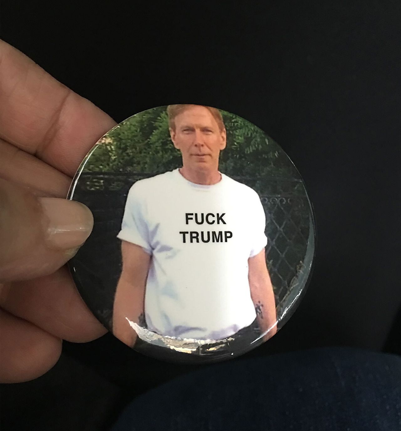 Hastreiter's late friend Jim Walrod on a printed pin.