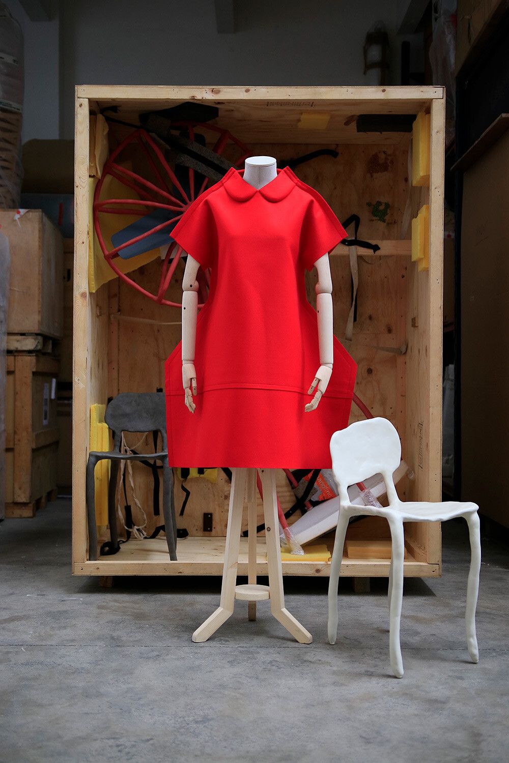 Comme des Garçons dress with a Clay chair (2009) by Maarten Baas at the Edelkoort Design Collection space in Paris. (Photo: Daniel Costa)