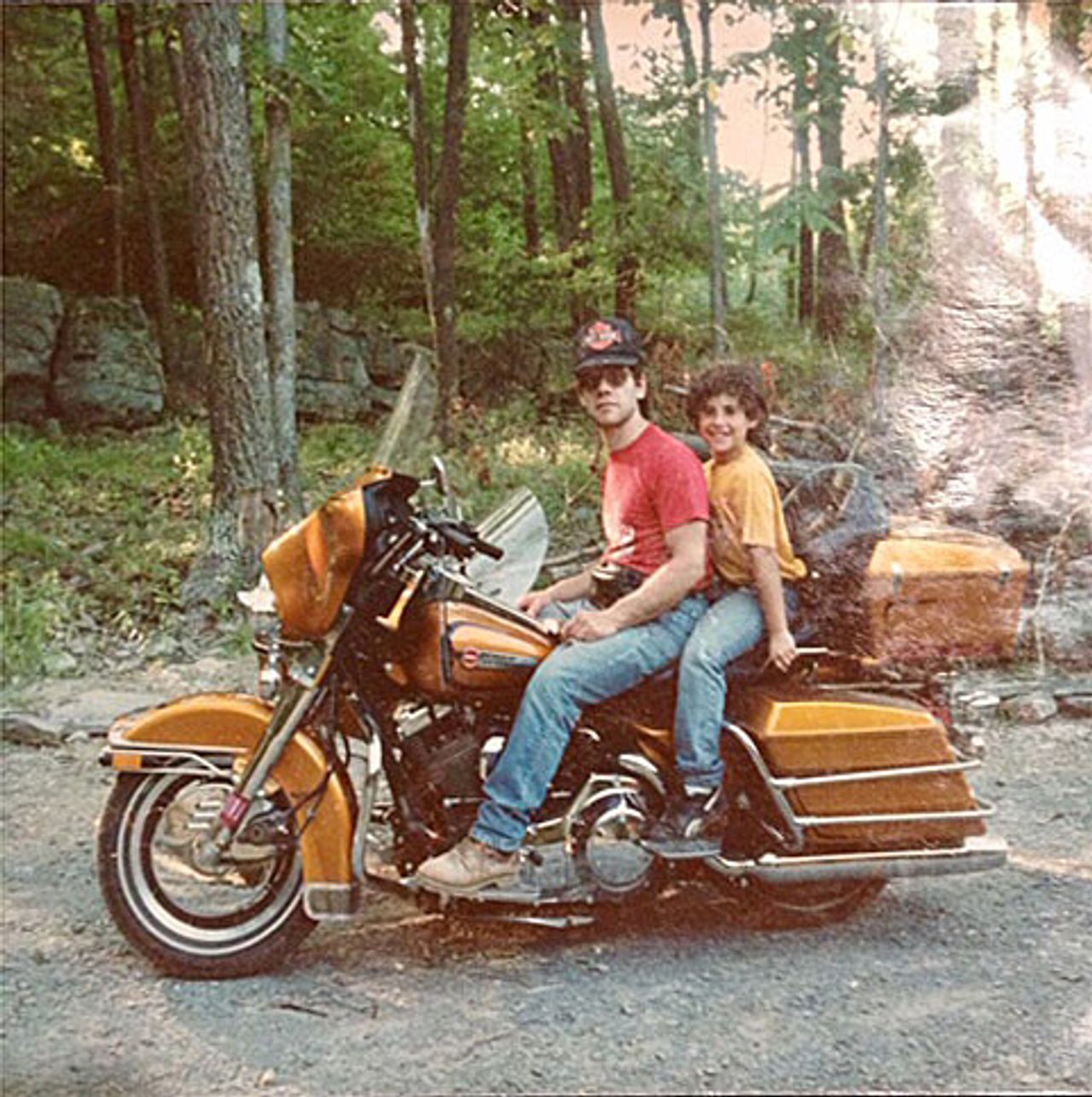 Brush and his son, Silla, on a motorcycle.