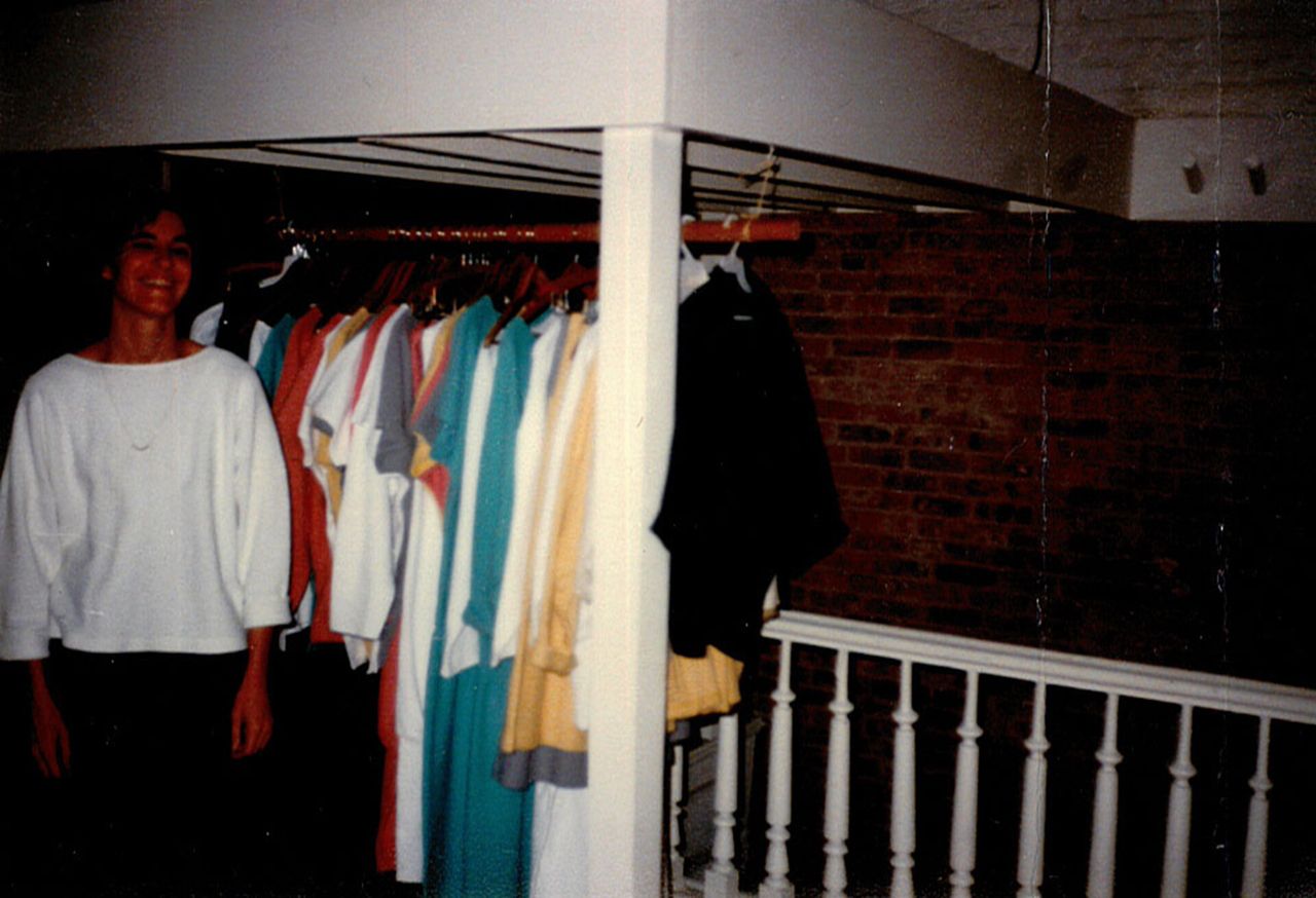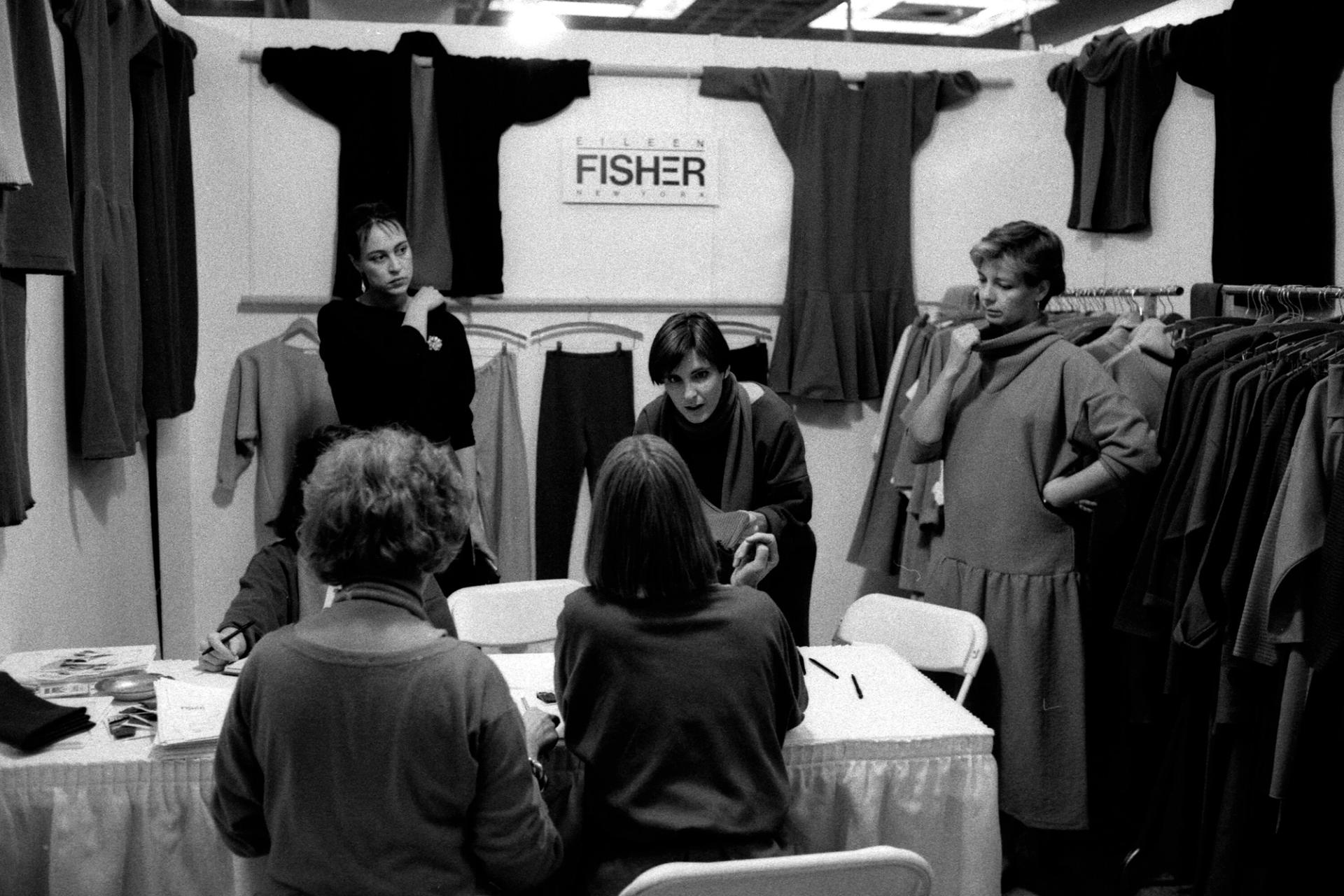 Fisher with her first collection at the International Fashion Boutique Show in 1986. (Courtesy Eileen Fisher)