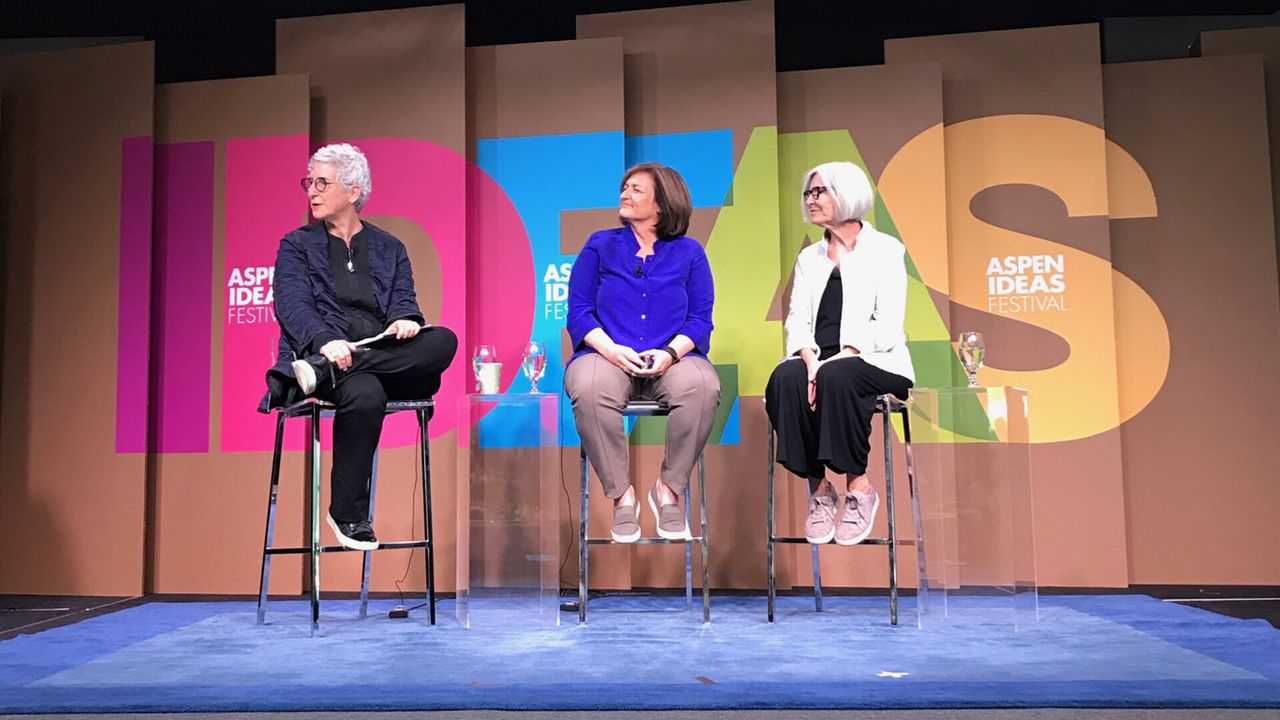 Former Patagonia CEO Rose Marcario (center) and Fisher at the Aspen Ideas Festival in 2019. (Courtesy Eileen Fisher)