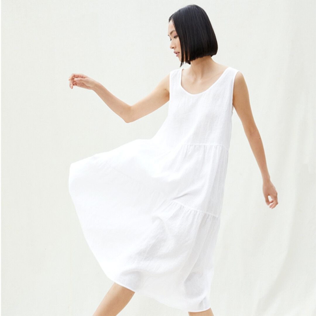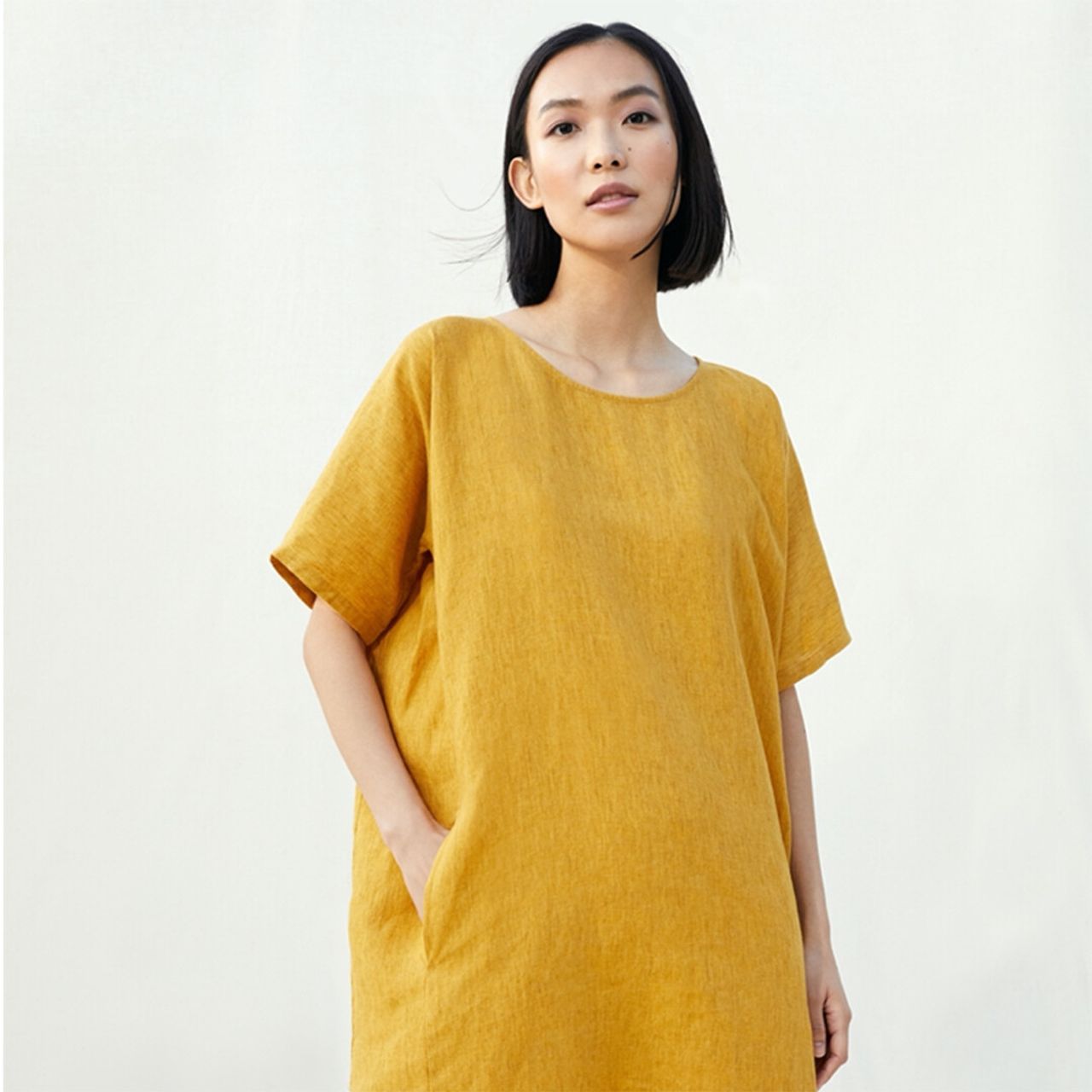 A linen dress from Eileen Fisher’s spring/summer 2021 collection. (Courtesy Eileen Fisher)