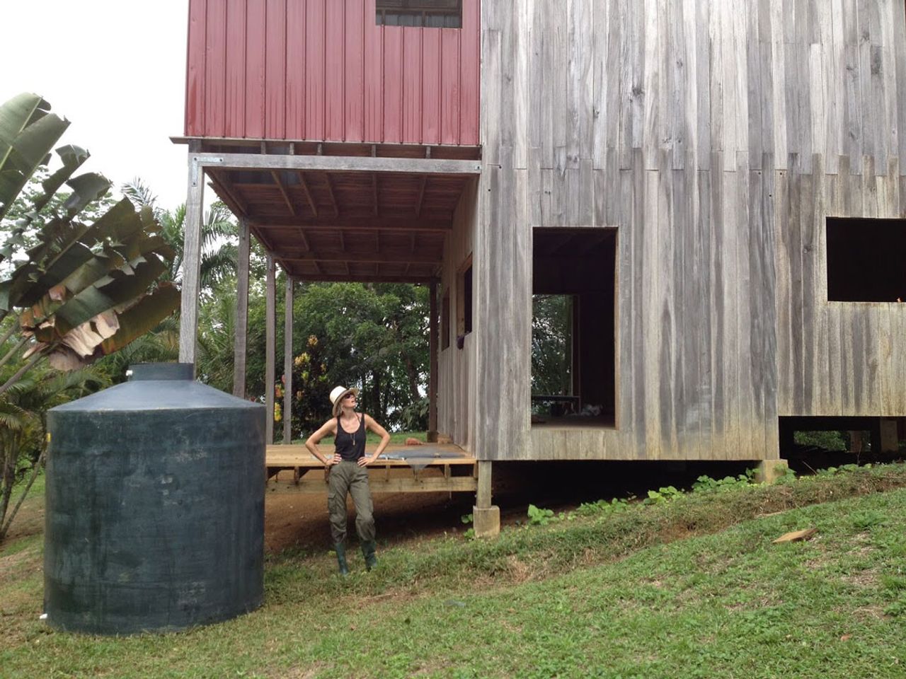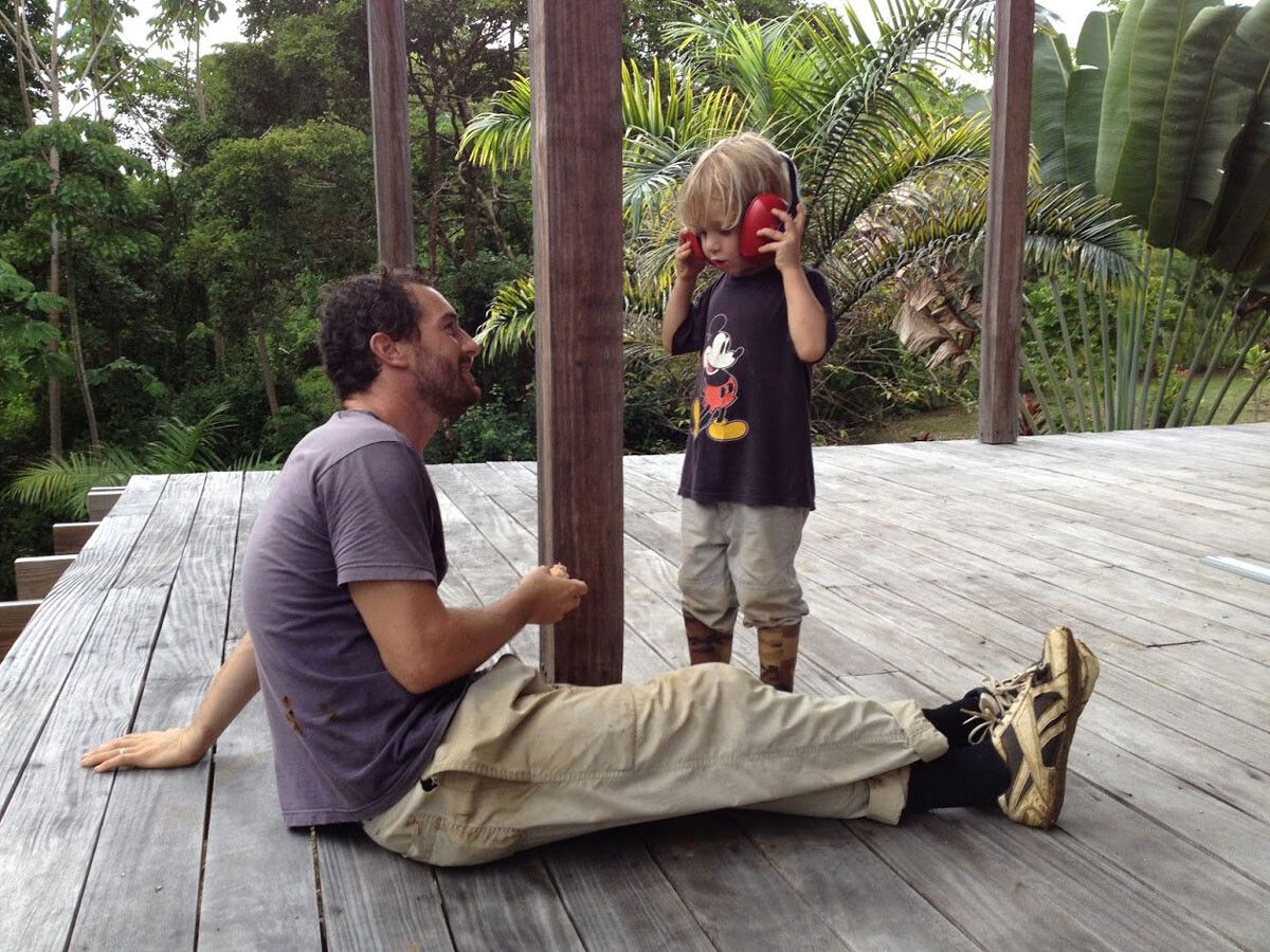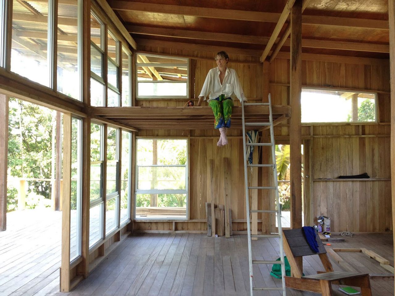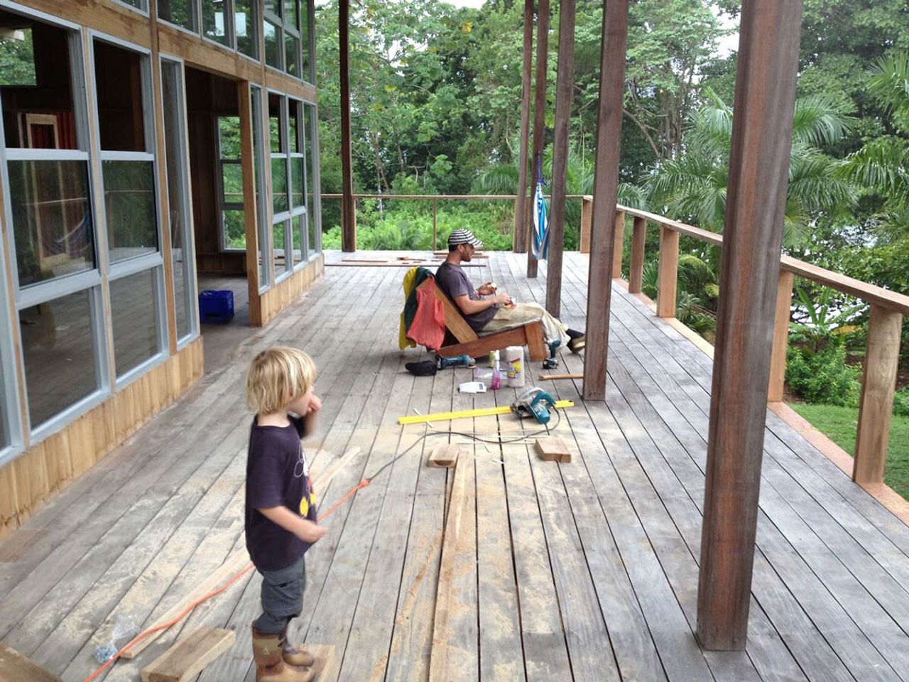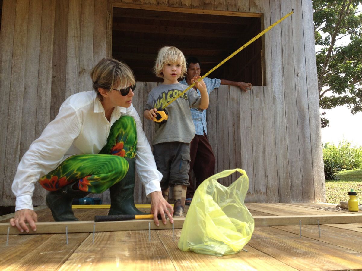 Kamm and her handy helper, Julien, mid-construction on their house in Panama.