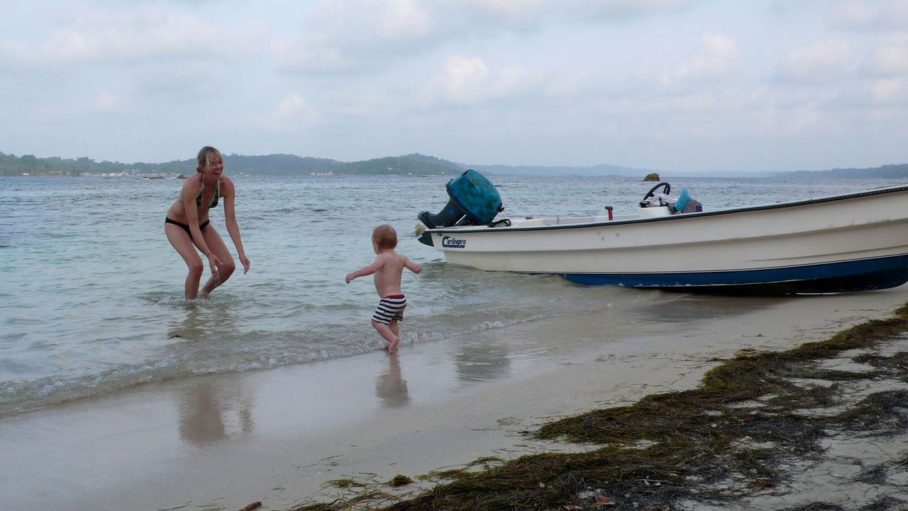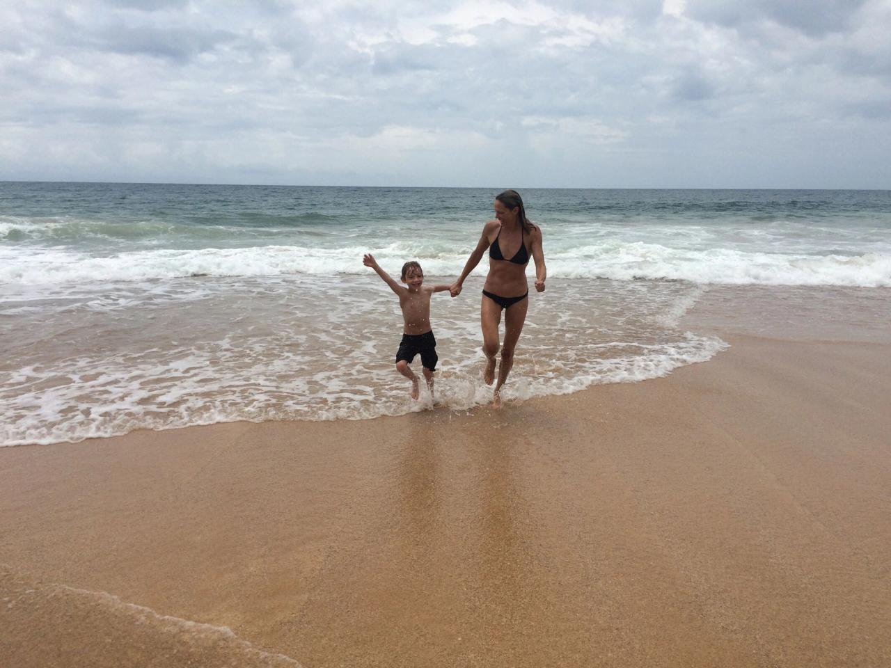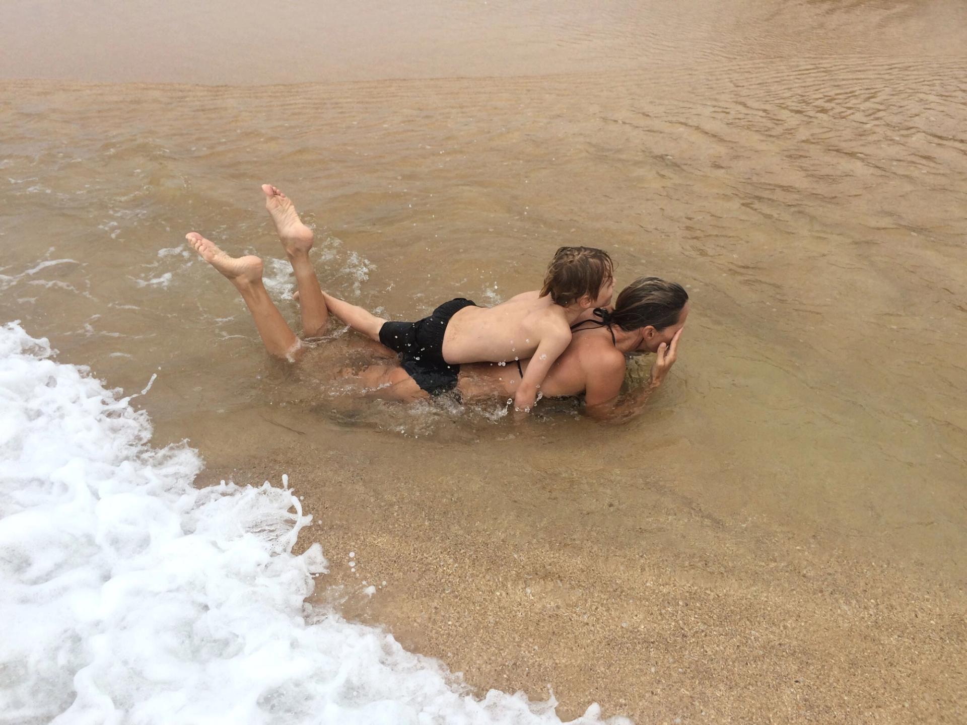 Kamm and her son, Julien, playing in the ocean in Panama.