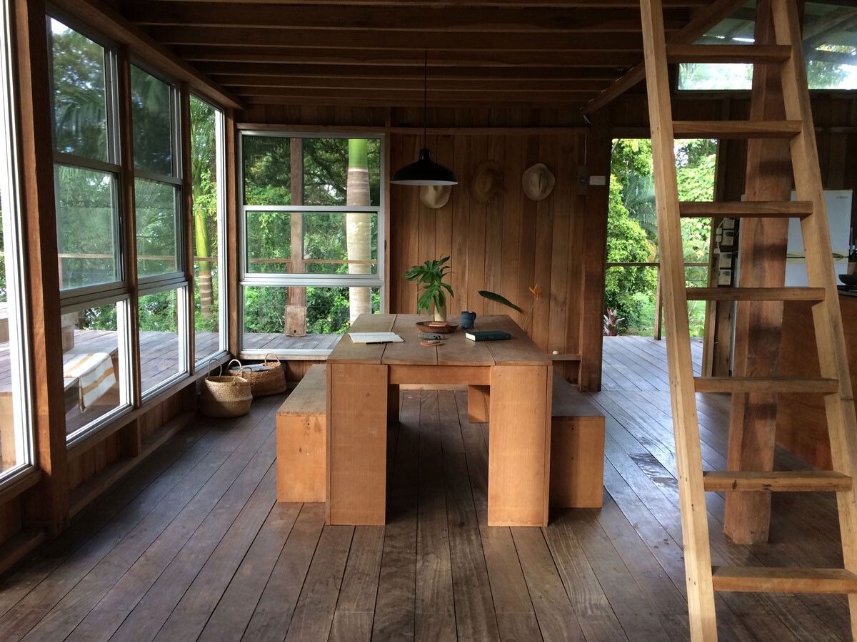 JK: Luke, my husband, and I designed and built the house twelve years ago, which was an effort. And if someone asked us if we could do it again, I think the resounding answer would be, “Hell no,” because it was proper pioneering. We had to carry five-hundred-pound posts. It came in a dug-out canoe. You carry it across the island by hand, put it in the ground, lace it up, bolt it down, just one by one.