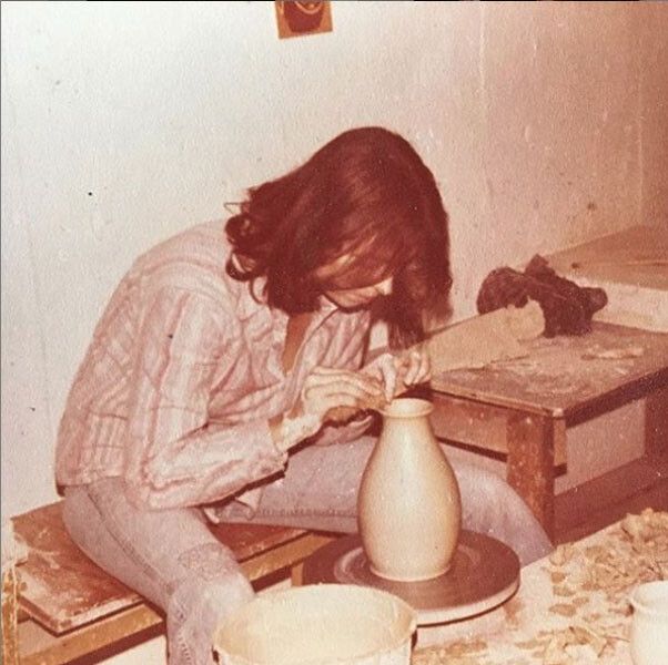 Kamm's mother, Kathy, throwing on the ceramic wheel.