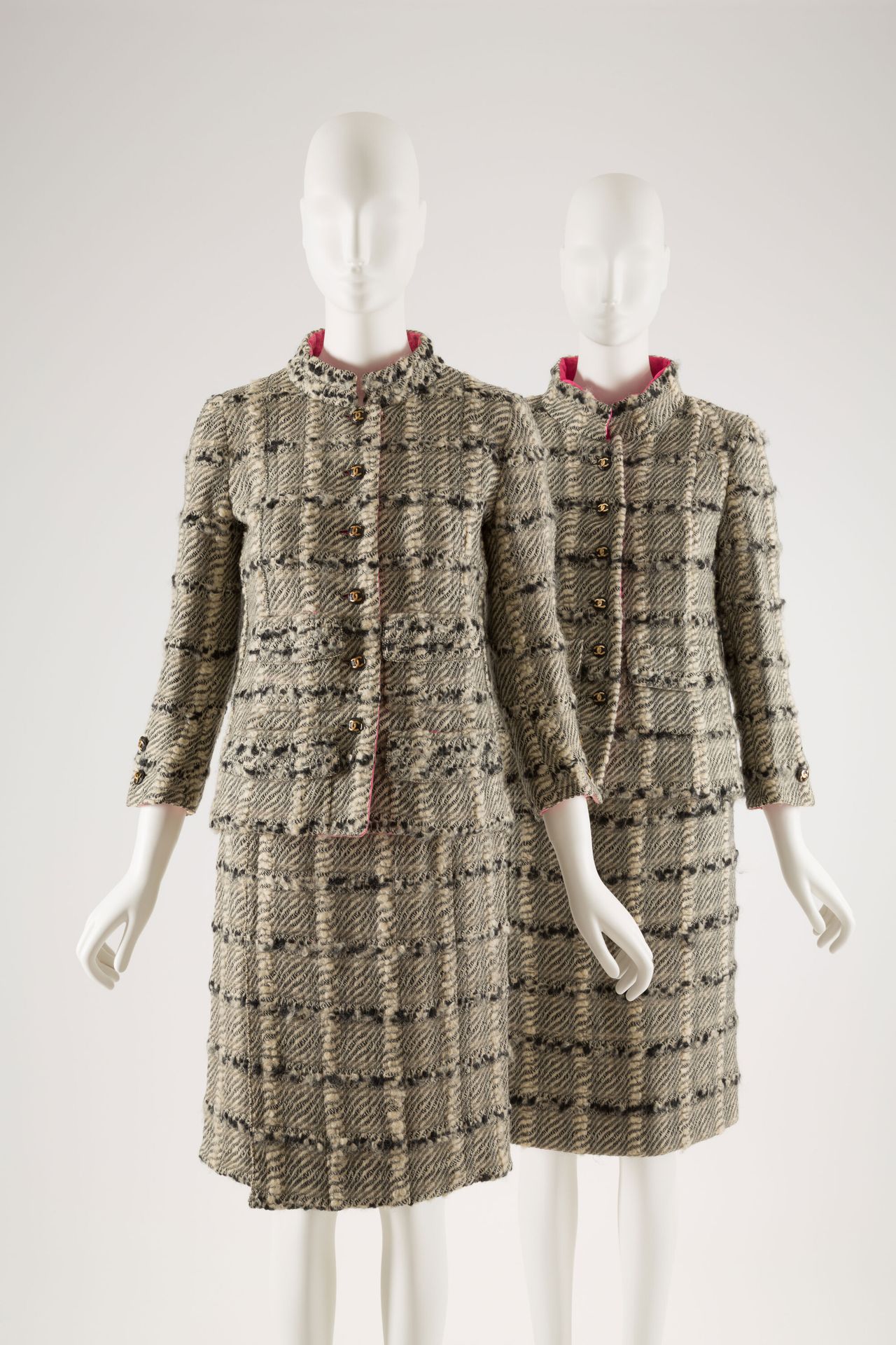 Original design by Gabrielle “Coco” Chanel (left) alongside a licensed copy of a Chanel day suit (right), part of the Museum at FIT “Paris: Capital of Fashion” exhibition. (Photo: Courtesy The Museum at FIT)