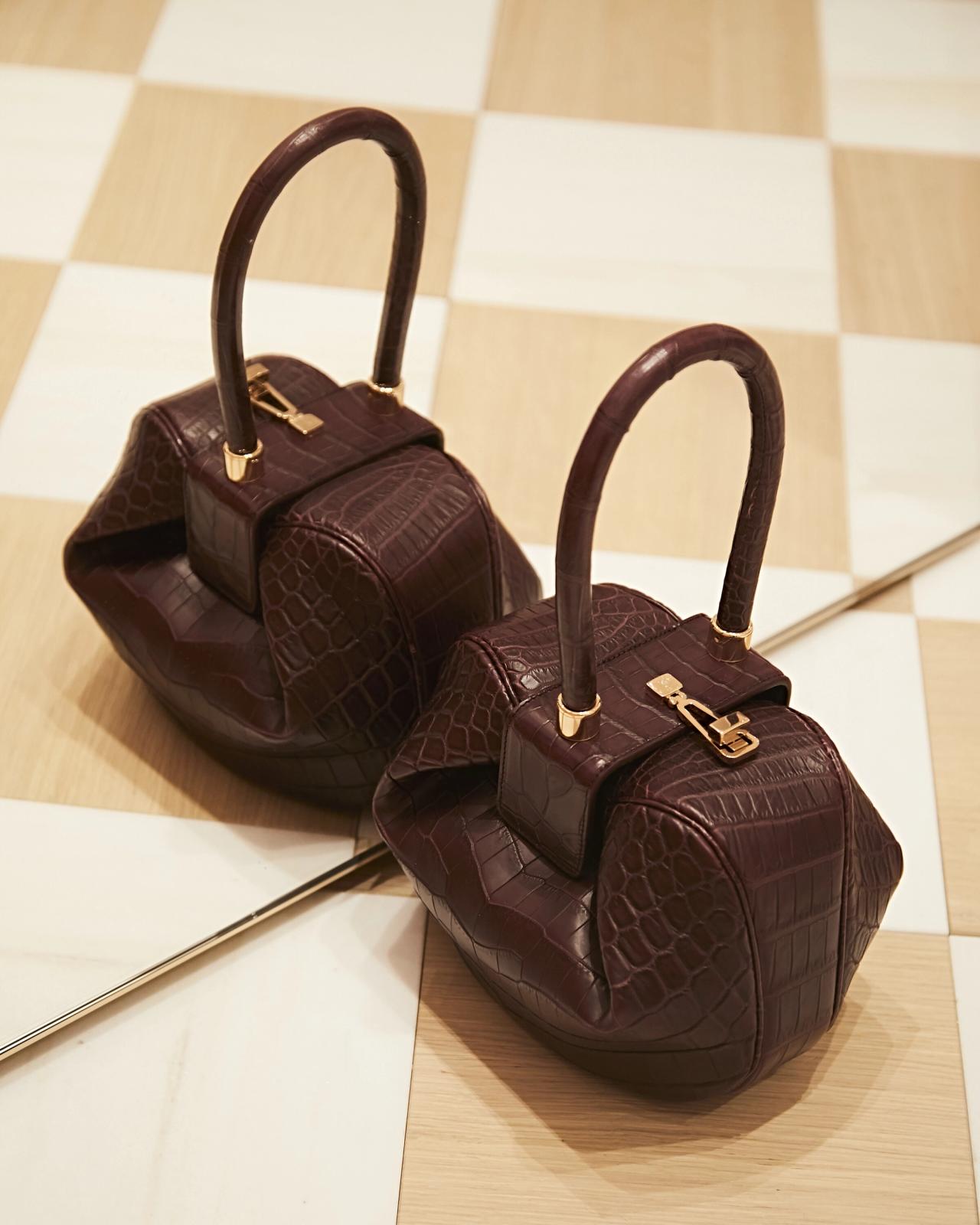 Gabriela Hearst Nina bag in burgundy croc. (Photo: Oliver Mint)