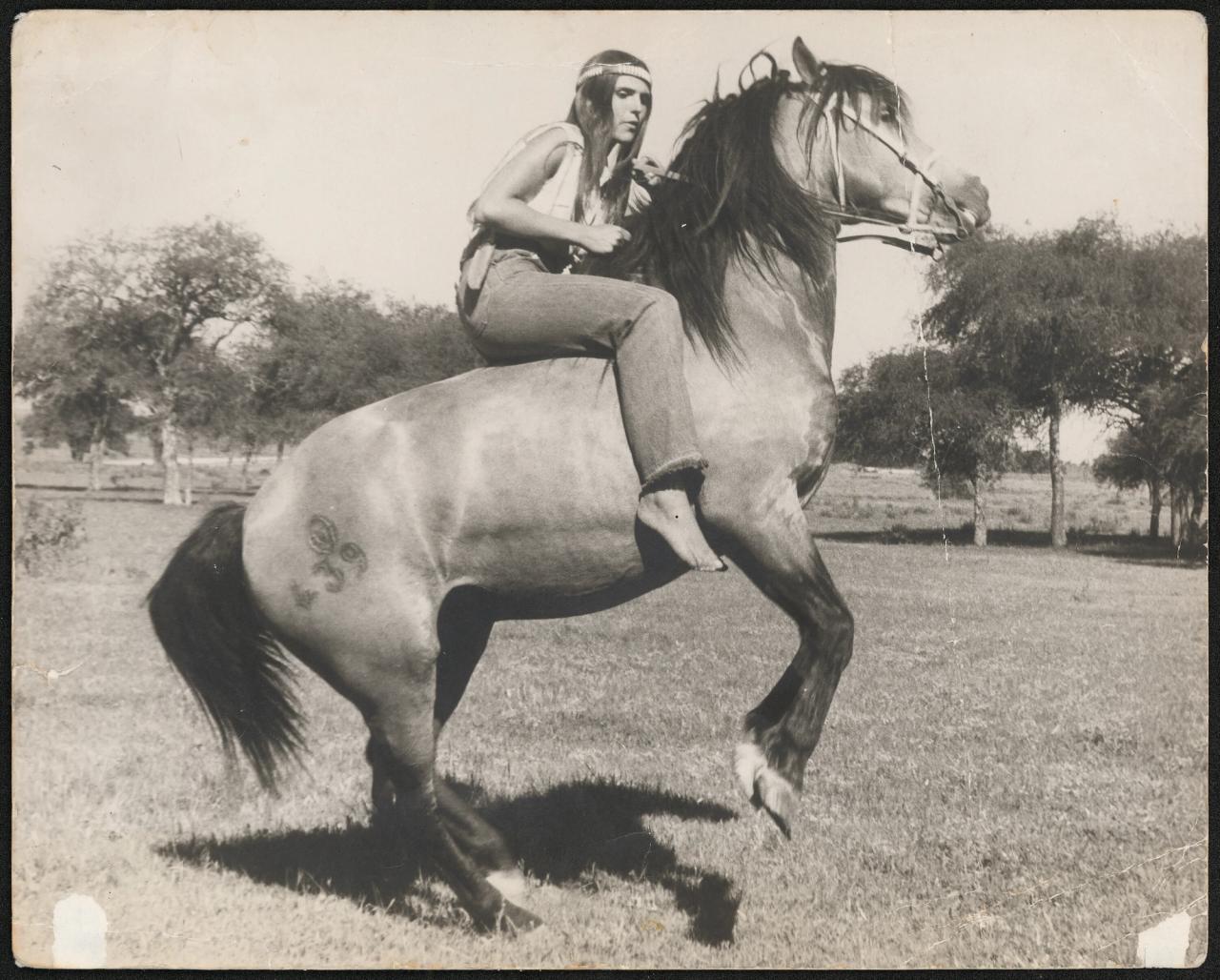 Gabriela Hearst’s mother, Sonia N. Souza, on the stallion Sarandi Tandil, in 1971.