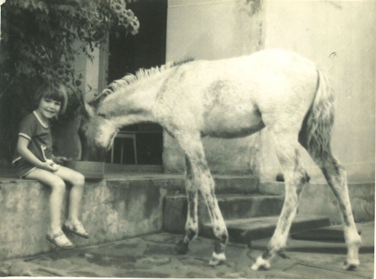 And the fact that I have, as one of my first references as a kid, it’s… And, actually, I discussed it with her not long ago and she remembers like, I can’t believe you remember this. One of my first images—of course I remember because it’s dramatic—it’s her being thrown by a horse, hitting the floor, the ground, and her teeth coming out, bleeding. She’s holding them, standing up, and coming towards me like nothing’s happened.