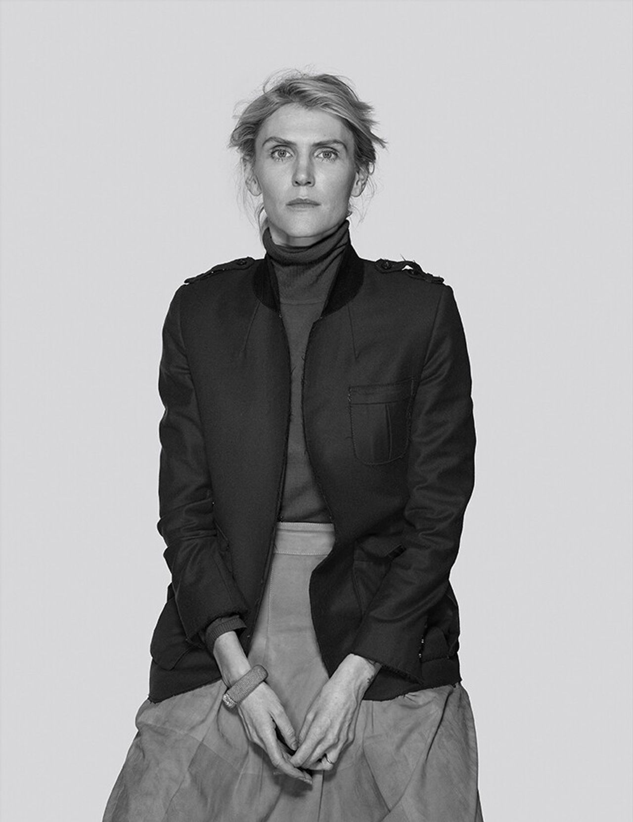 GH: Yeah. I’ve recently realized—and I say it as a joke, but it’s kind of true—I have a hard time listening to men or taking orders from men. Even my friendships, I gravitate… My friendships and my friends, usually are older women. Except [Stephanie de Lavalette, director of operations at Gabriela Hearst], but she’s also a strong character. It’s always a woman with that—there’s something fascinating about these women, which is that they have a great armor. But their inside is very fragile. So it’s the inside that is really, really interesting to me. And so, I design with that metaphor. Everything that is close to the skin has to be really, really soft, and then I build out.