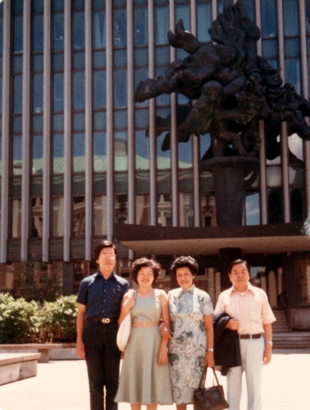 Lee, then an undergraduate at Columbia University, with family.