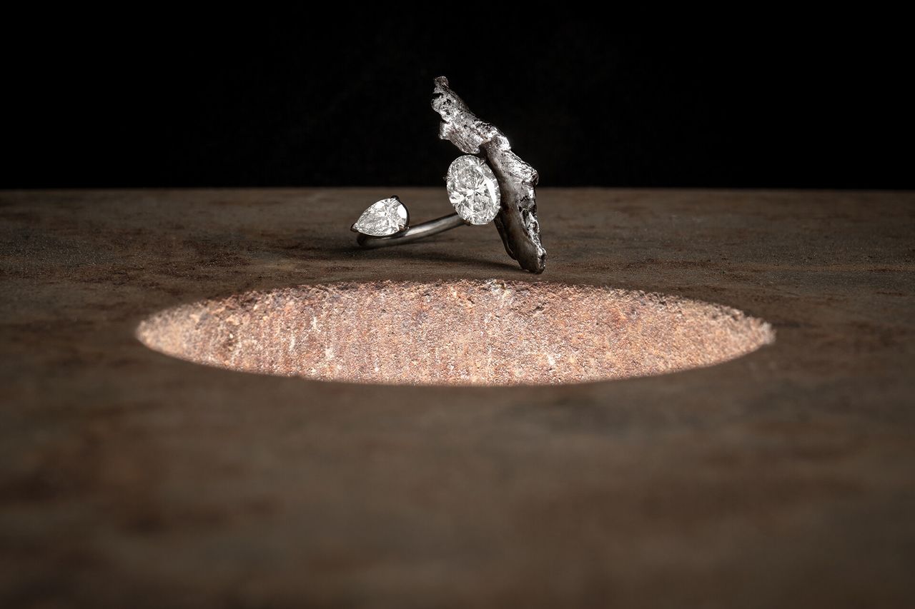 Because of the rarity of these materials, which, in many ways, are much more rare than diamonds, I wanted to explore setting them and creating these sculptural forms around them, or, celebrating and highlighting the natural geometry that already existed within the piece.