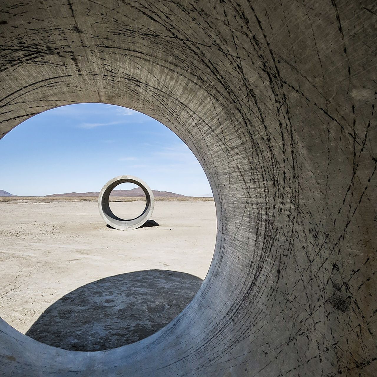 Nancy Holt’s “Sun Tunnels” (1973–76) in Utah’s Great Basin Desert. (Courtesy Monique Péan)