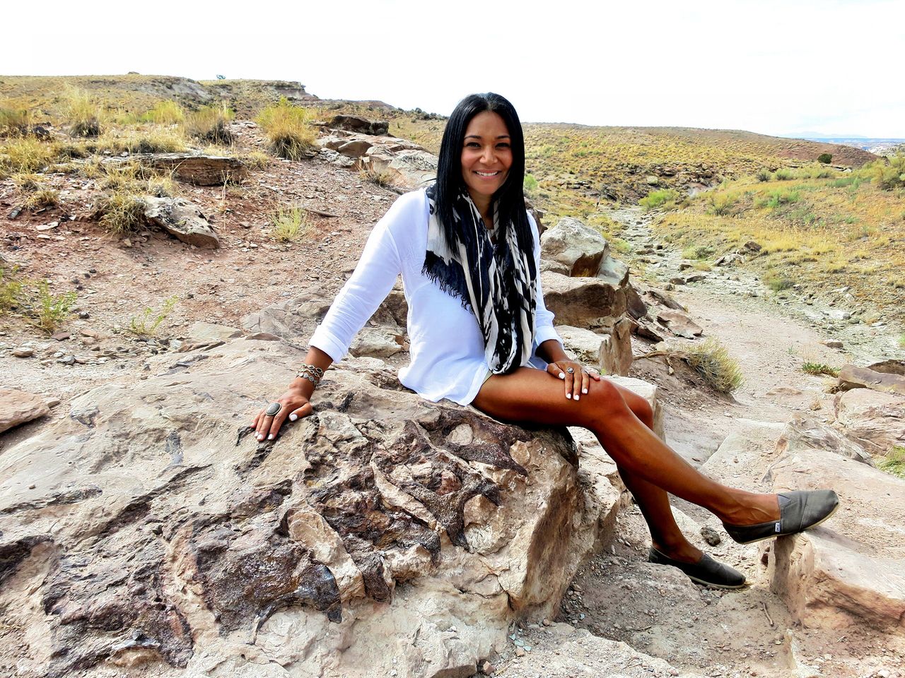 Péan with fossilized dinosaur bones in Colorado. (Photo: Amanda Hearst)