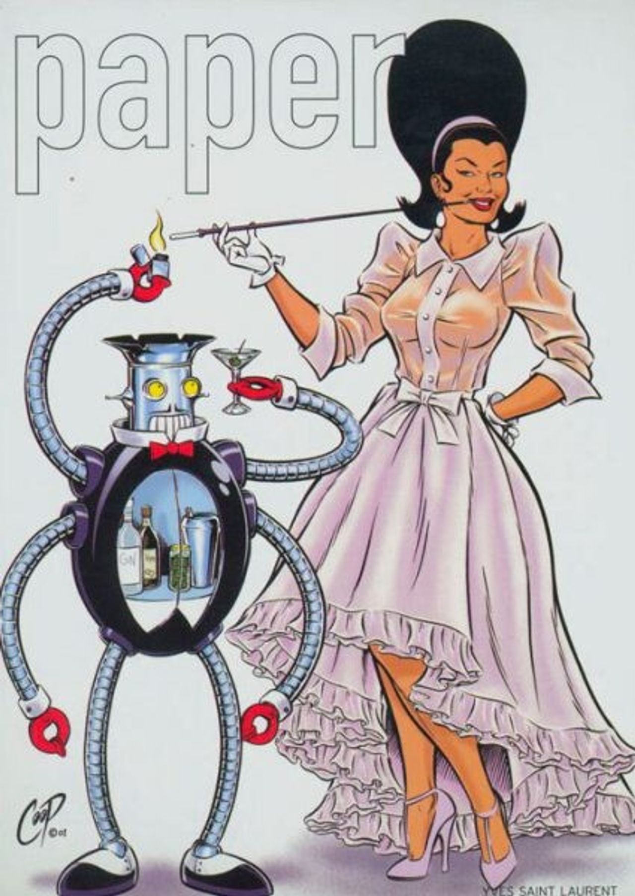 Tauba [Auerbach], who’s very reticent and she was a hard one to crack, but I fell in love with what—I went to her first show, I got her “A,” her seminal piece, “How to Spell the Alphabet.” I loved Tauba’s work, and I just stalked her until I became friends with—people like to be appreciated, you know. And also, when they came to Paper, if they were photographers or illustrators, like Coop, you know, I loved Coop. But I’d come up with an idea and I would just give him the pages. I was like, “Here are the clothes,” I’d send him pictures of my favorite couture from every designer, and he’d do these insane things and I’d run them twenty pages. Or if I loved a photographer, I’d say, I need to shoot shoes. “Here are the shoes. Make sure you can see them, that they’re not like this [pinches fingers] big, and do whatever you want, and give me like eighteen pages.”