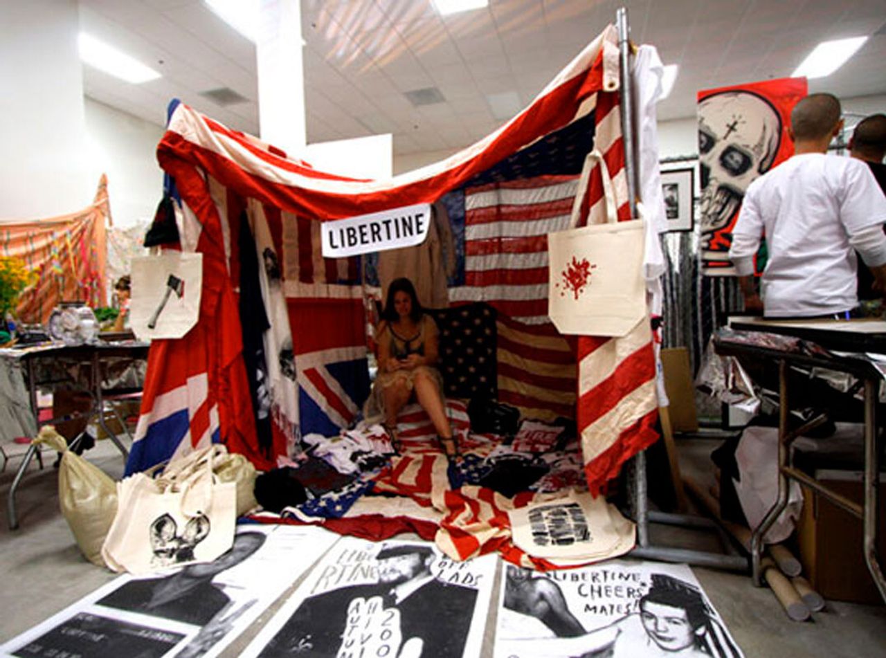 KH: From my living room, like what? I mean, hip-hop, the skate, sport, the cultural movements, the politics, Bill Clinton getting elected. Everyone thinking, “Oh, my God, he’s young, this is fabulous,” and then the Starr Report. And I remember collecting all these things. And I remember the day after the World Trade Centers—our offices were down there—crashed, my friend Espo, the artist—his studio’s next to our office on Franklin Street—he said, “Kim, you’ve got to come down here.” You couldn’t even move around the city because they wouldn’t let you below Canal Street, but I had a business there, so they would let me. He said, “The Koreans are selling these t-shirts. In one day, in twenty-four hours, they made all these T-shirts of Bin Laden bending over with the Empire State Building up his ass, with the firemen and the American flags.”