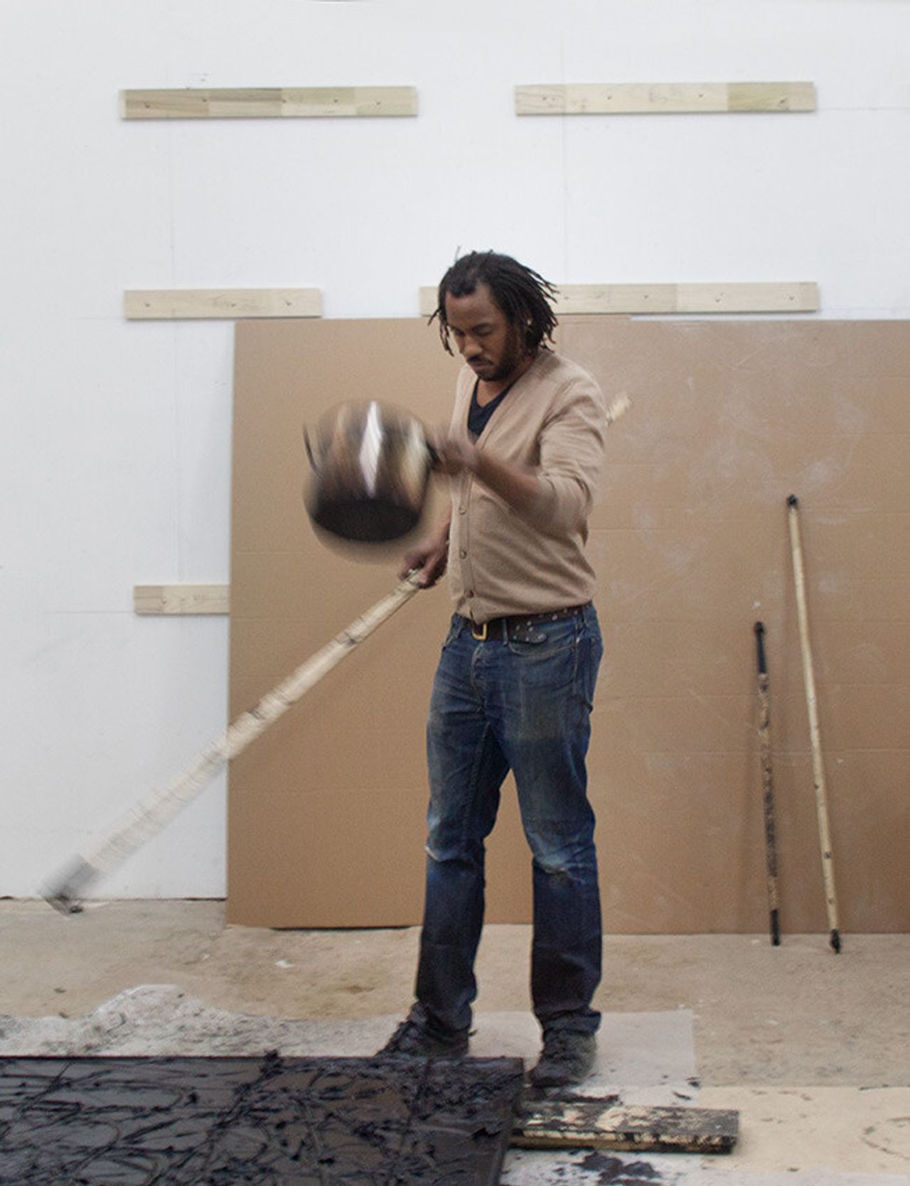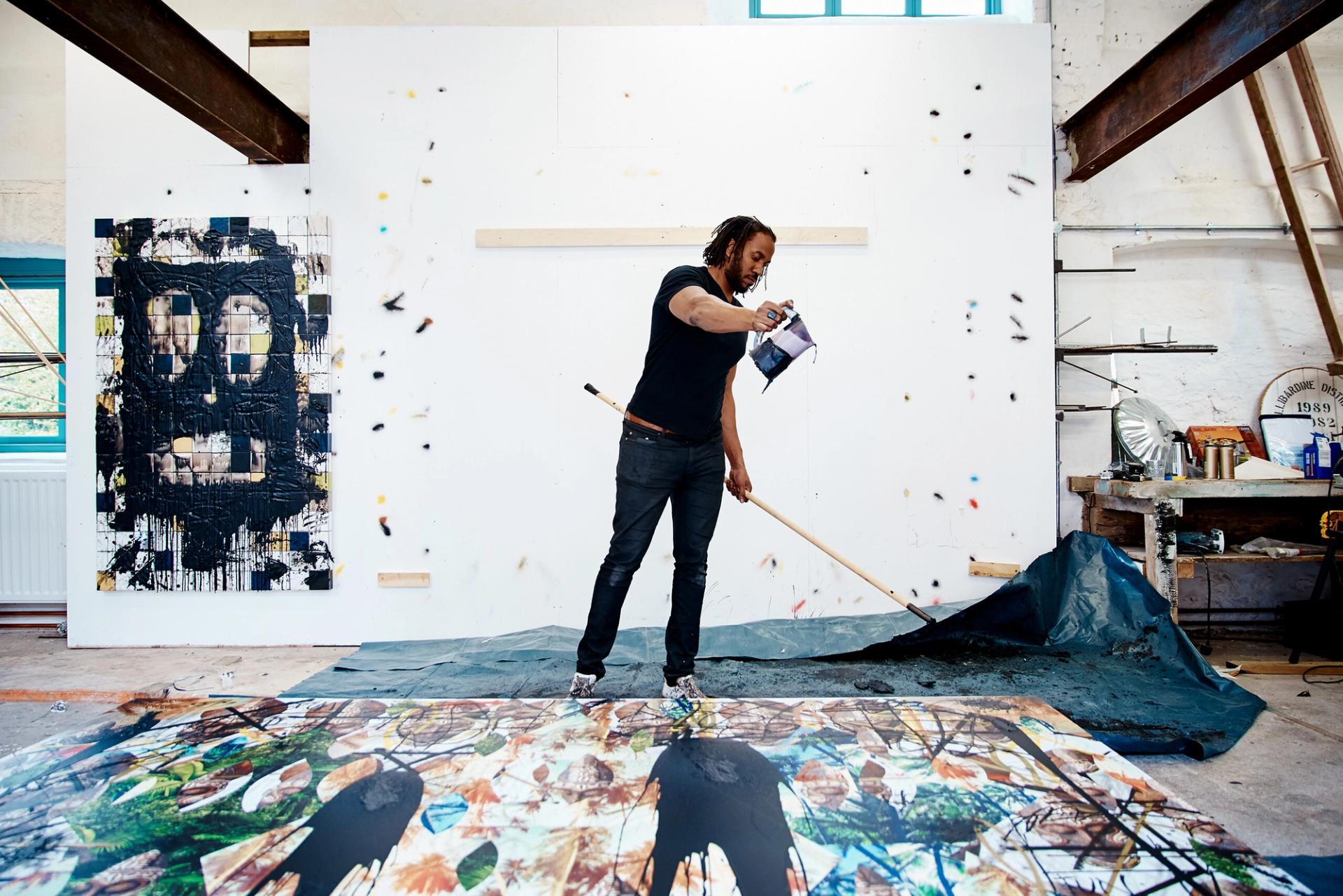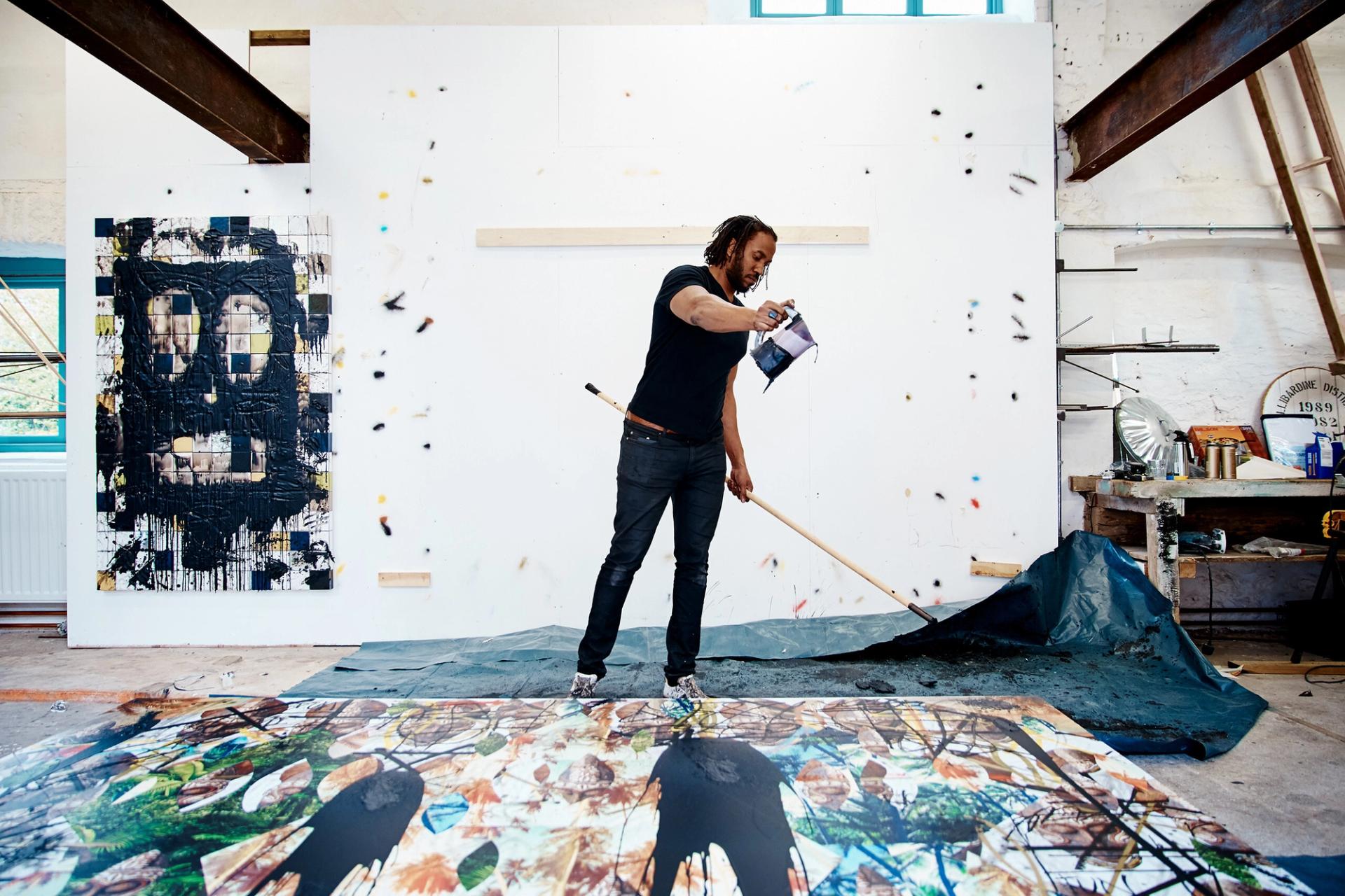 Rashid Johnson at work in his studio. (Photo: Kendall Mills)