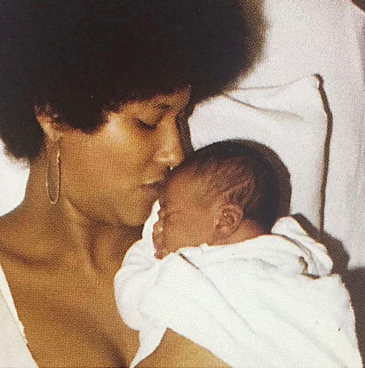 A newborn Johnson being held by his mother.