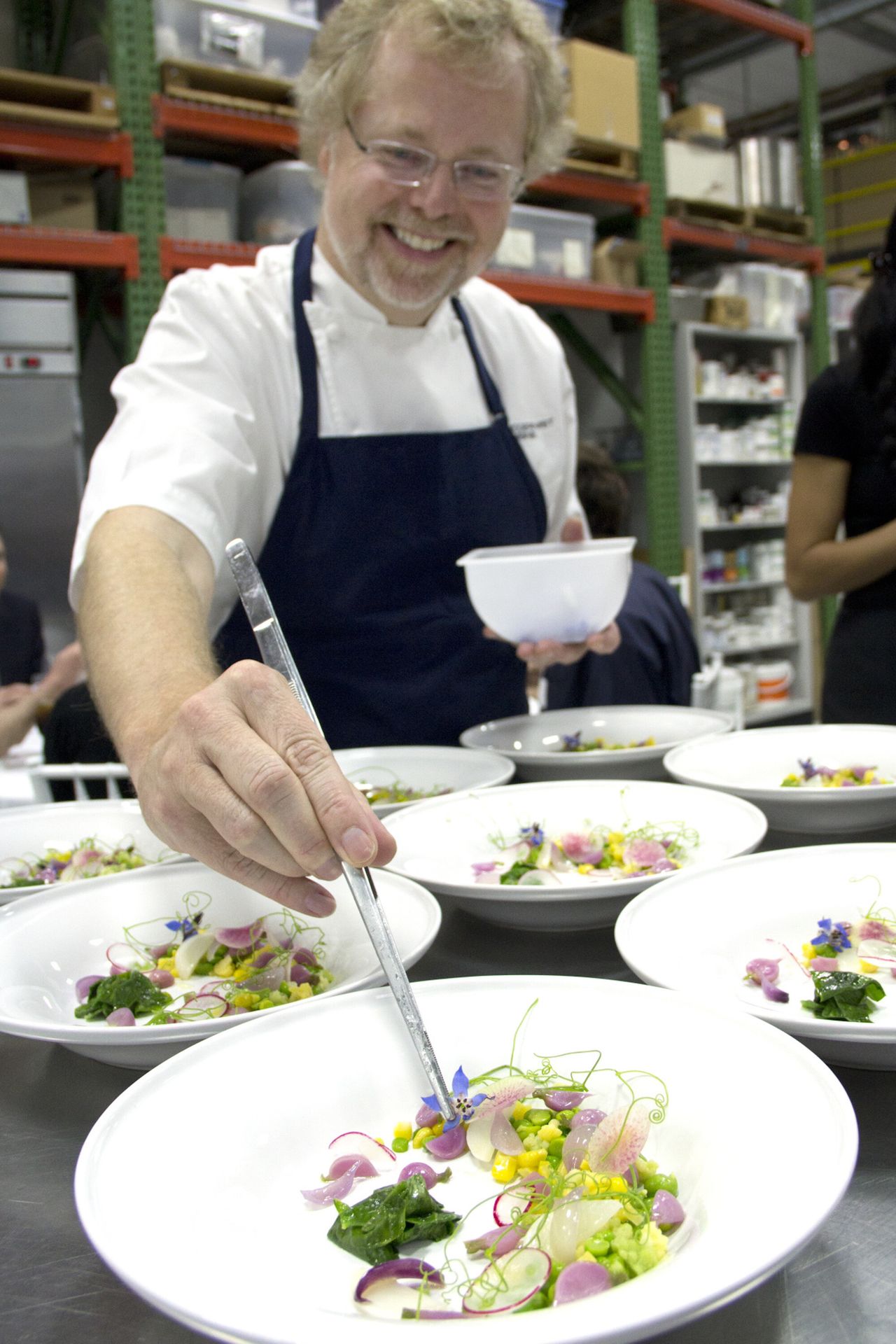 But the other thing that I thought was really important is, because we’re writing a cookbook, in high-end kitchens, presenting the food is part of cooking it. So we were big on saying, “We don’t have a food stylist.” There’s nothing wrong with food stylists. But when you go to Per Se for dinner, they don’t have a food stylist tweaking your food. The chefs do it, and that’s part of the whole—